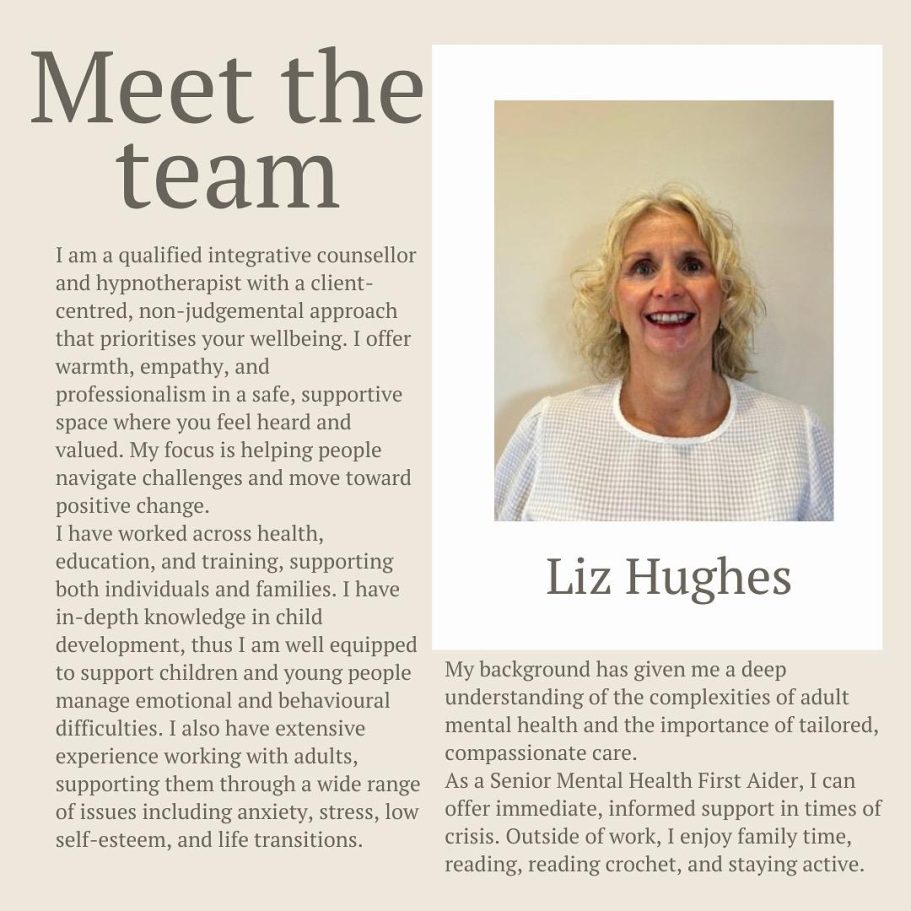 I began my counselling practice after working within educational settings for a number of years. The need for mental health support drove me to return to education and qualify as a counsellor through Staffordshire University over 10 years ago.